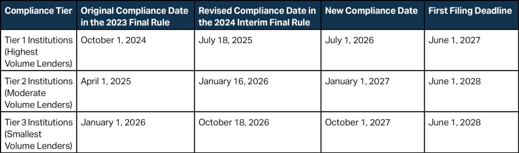 • Set a single compliance date — Jan. 1, 2028 — for institutions above the threshold in both 2026 and 2027. Institutions can begin collecting limited demographic data 12 months before their compliance date to test systems.